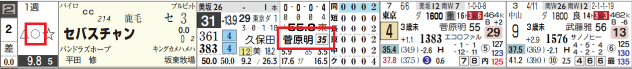 2・セバスチャンは、菅原明良騎手で展開印〇