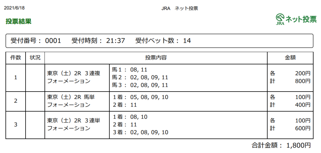 馬券はこんなかな。