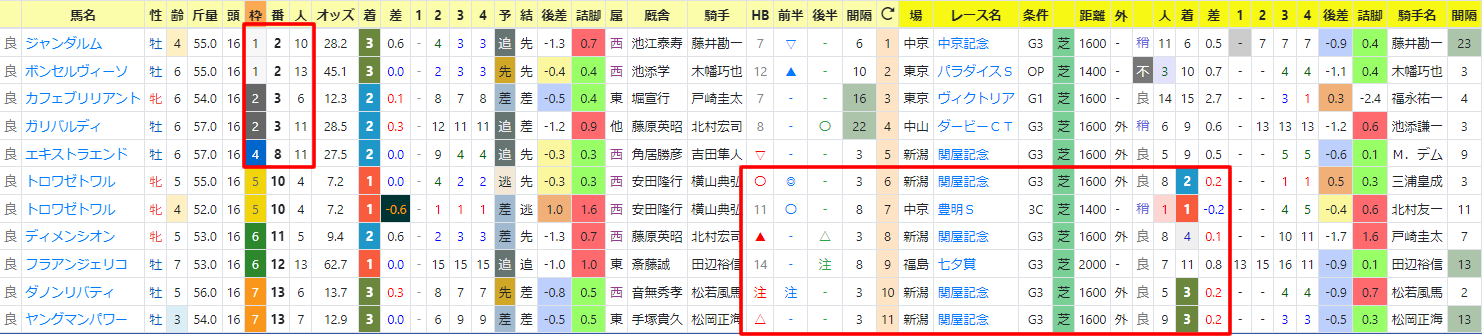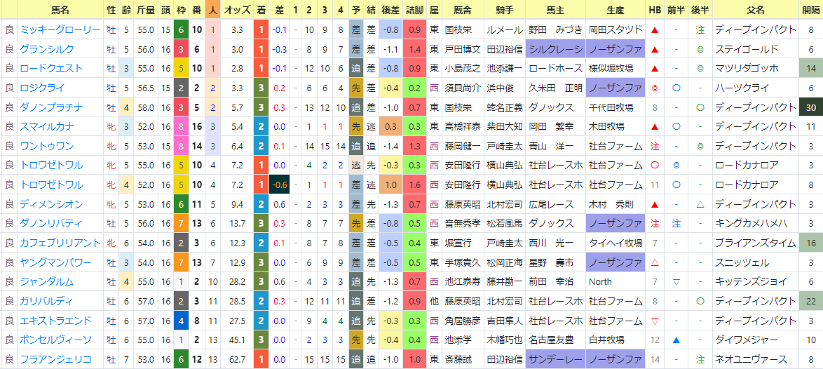 上段が1~3着馬、下段が1~3番人気馬。