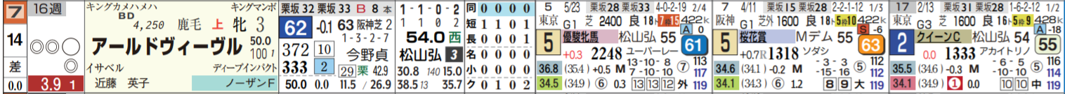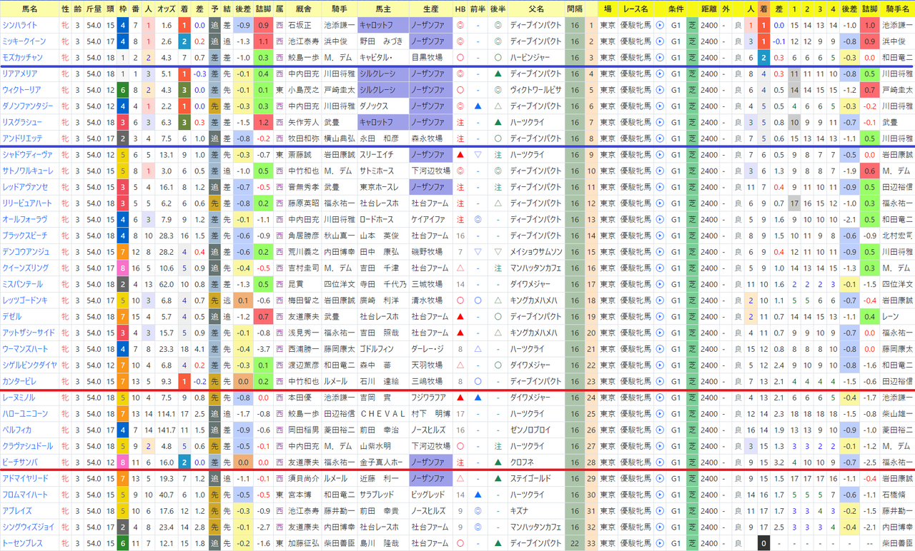3走前の桜花賞の指数が未だに背景色付きなように、春の時点で出走馬中上位の指数を出しておりました。