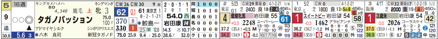 もう1頭のオークス上位、4着だったのは9・タガノパッション。