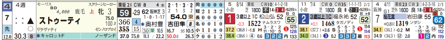 同じモーリスの中距離での芝OP成績をみても、どれも大体同じ感。
