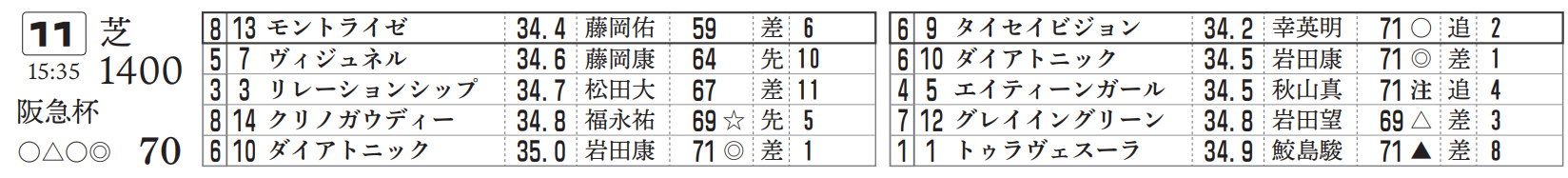 阪神11R 阪急杯