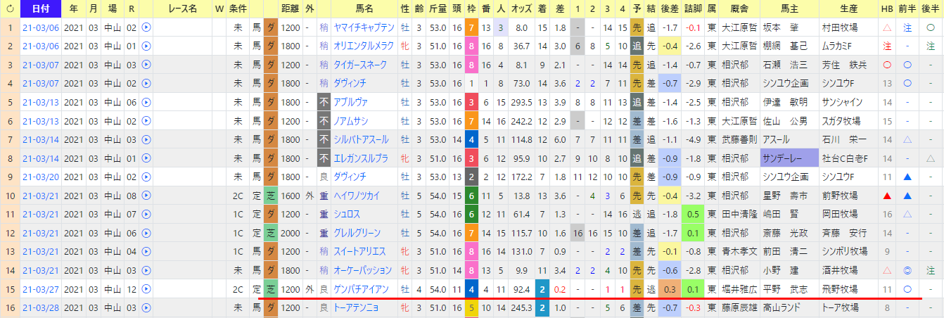 関東で普通の厩舎に所属で騎手も普通なら、これが普通のパターン。
