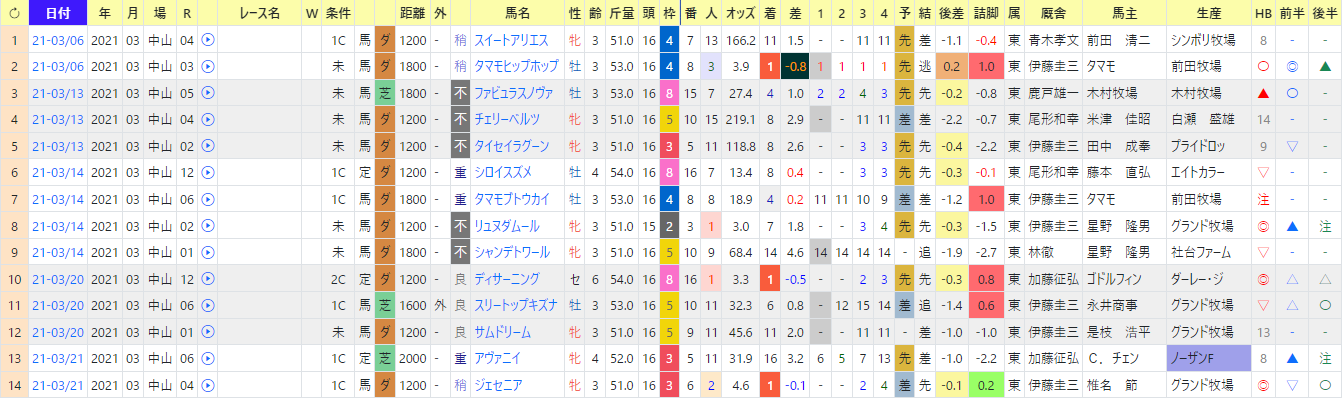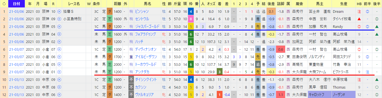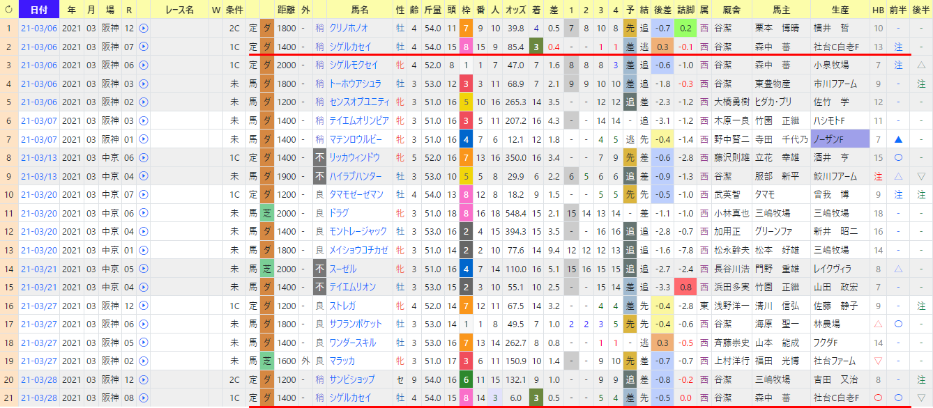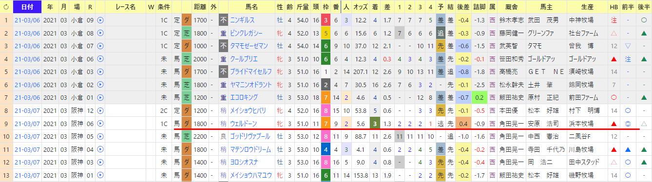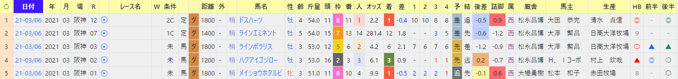 同馬の次走では、3番人気、HB〇、前半〇で3着。