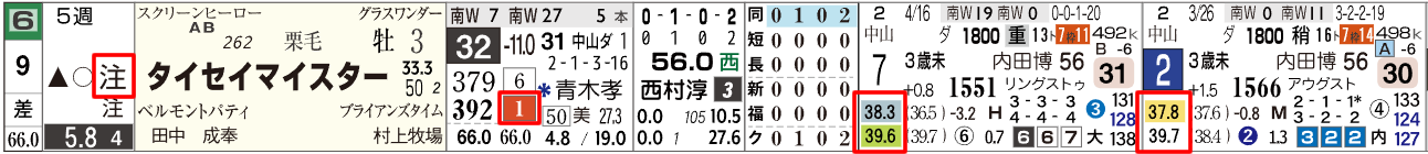 2走前の休み明けが「詰脚」パターンで「青・赤文字」と、最後は伸びずに流れ込み。