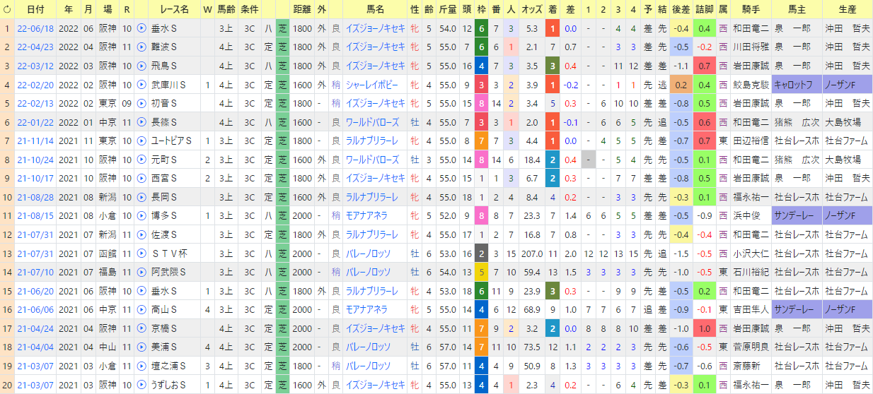 リステッド2連勝中で、2走前の谷川岳Sは今回と同じ位の流れになりそうで、そこを「詰脚」パターン「黄色・赤」での勝利。