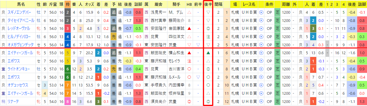 後半印入りで、前走がUHB賞だった馬達の結果。