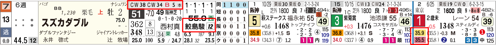 3走前の未勝利勝ちの時には、「詰脚」パターン「黄色・赤」を出しました。
