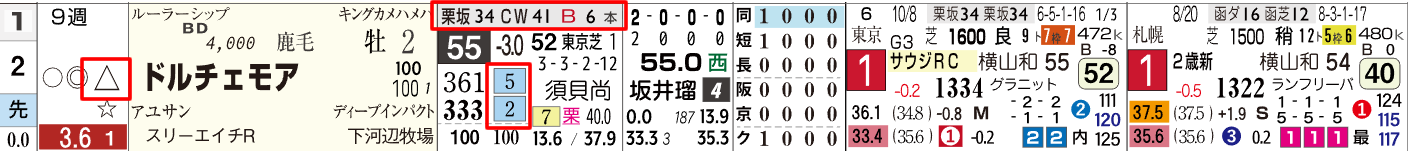 今回の出走馬でこれを出しているのは、他だと16・コーパスクリスティしかおりません。