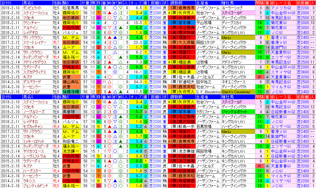 ・京都記念 過去成績今年も例年通りの小頭数。