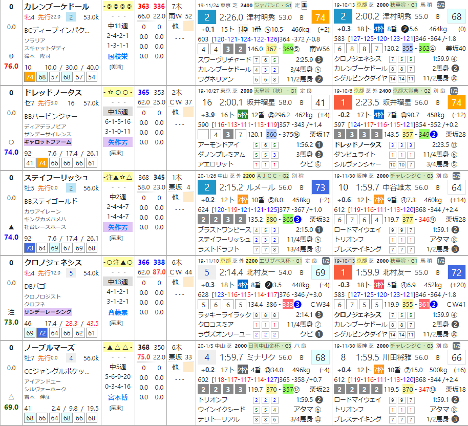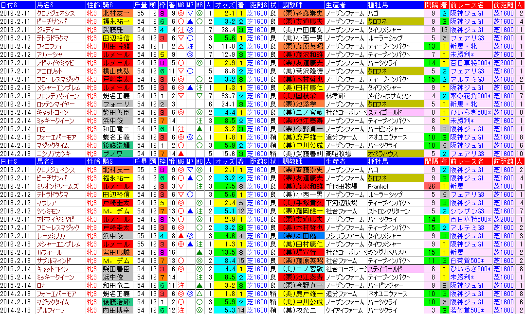派手な印は無いものの「前半」上位が連対馬で目立つ部分。