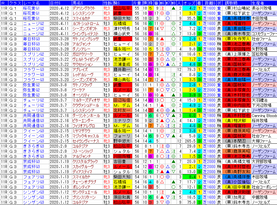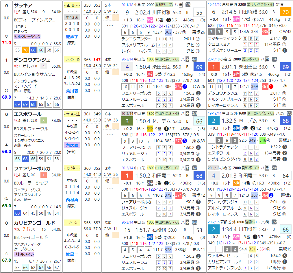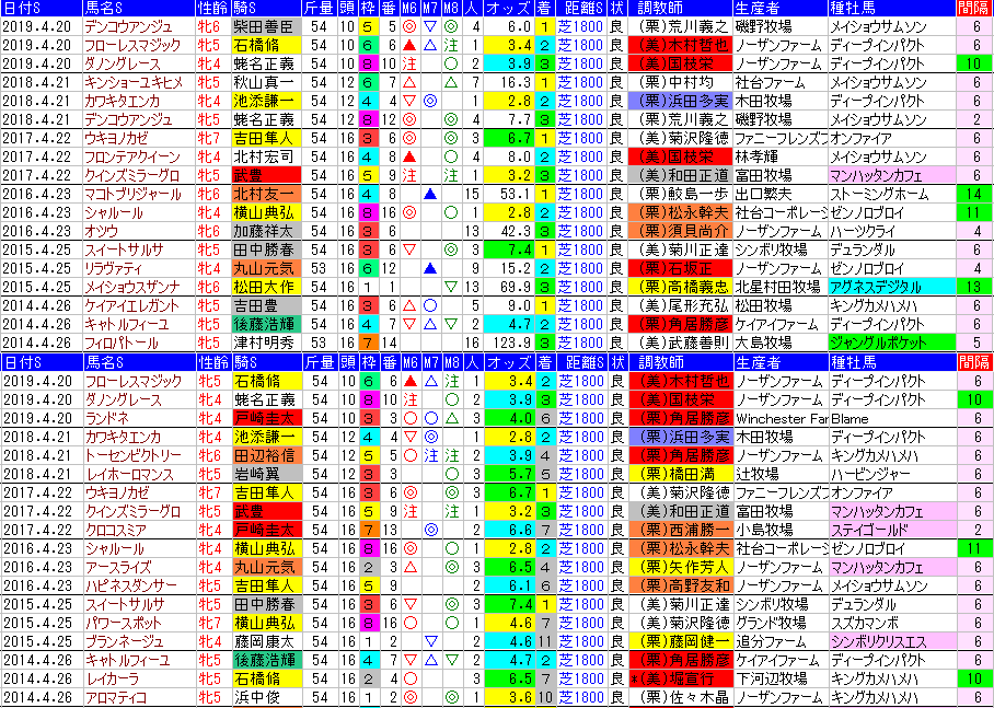 ここのブログのスマホ版の表示は、テーブルタグも使えず、CSSも上書きされてしまうので、競馬系のデータ表示にはちょっと向かない感。