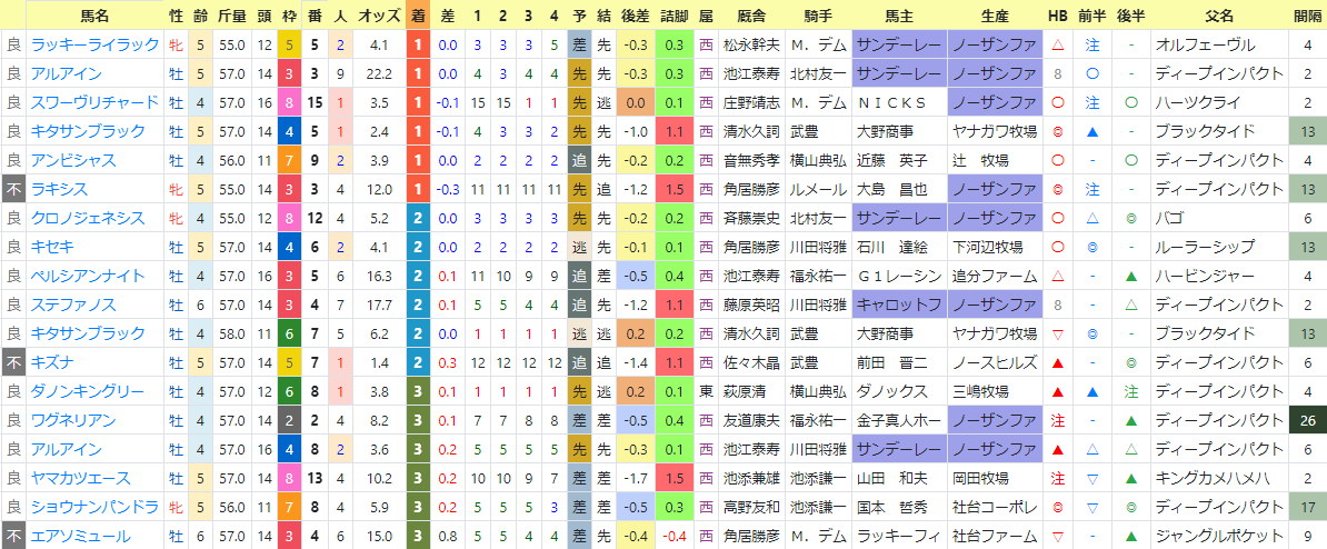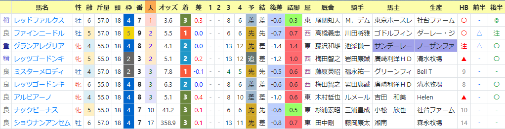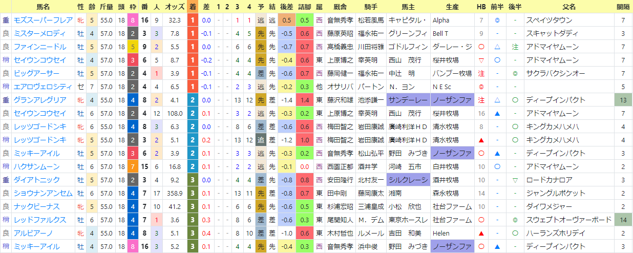 上段が1~3着馬、下段が1~3番人気馬。