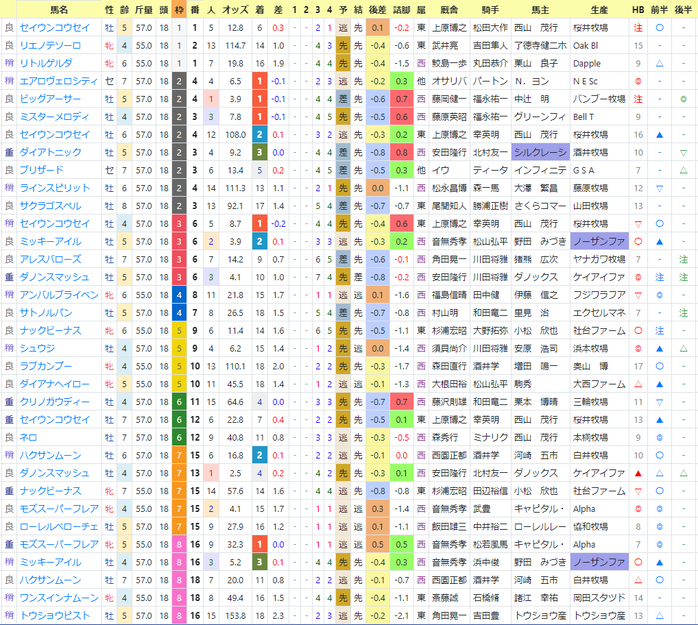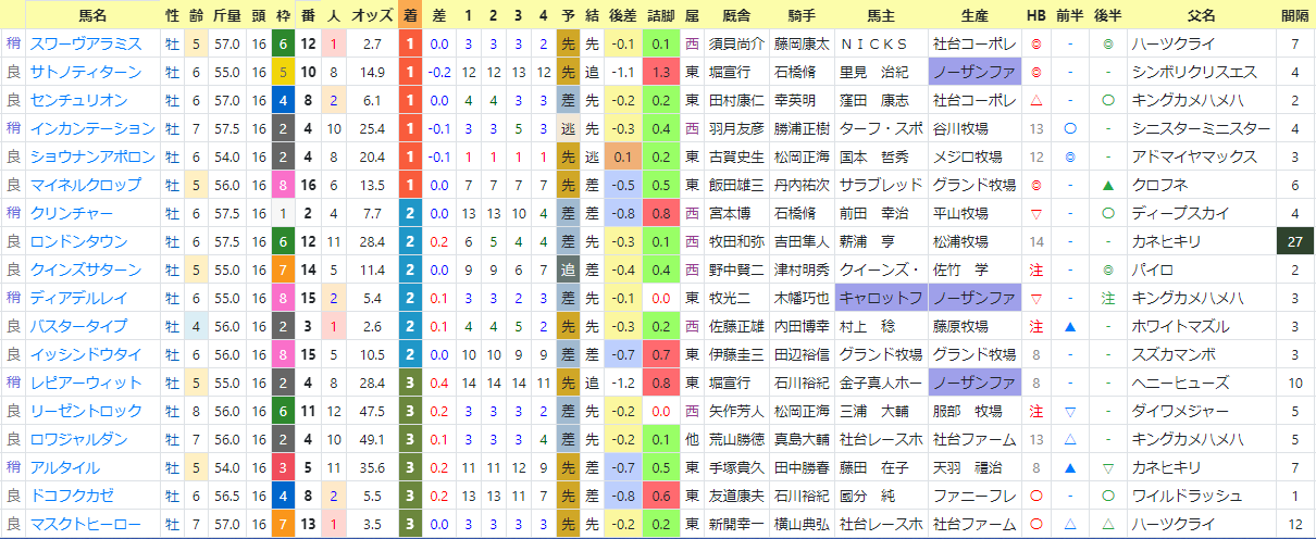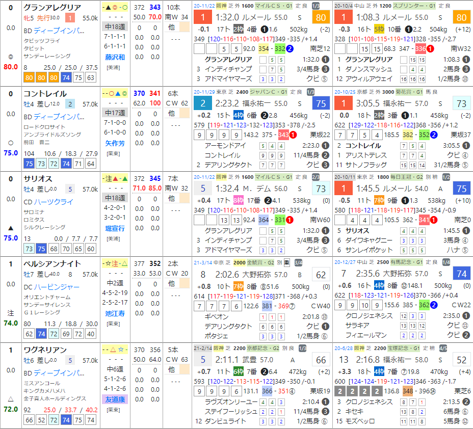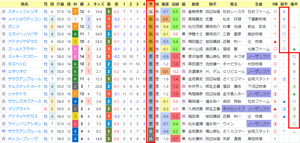 それらの3頭は「前半・後半」印で2位以内を持っている馬達。