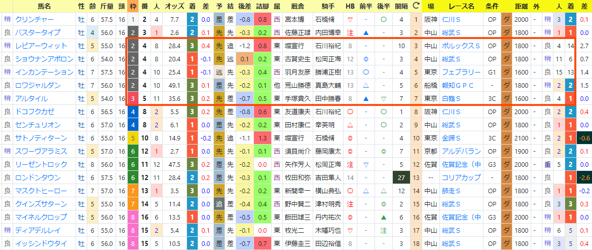 個々の馬達は当然違うけれども、顔ぶれや出走経緯は変わらずですね。