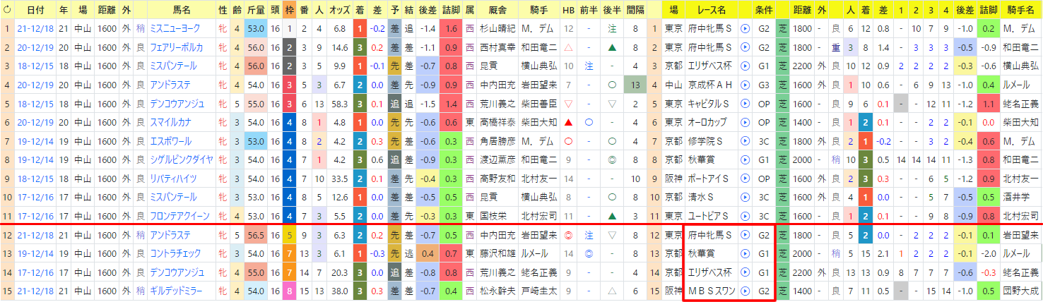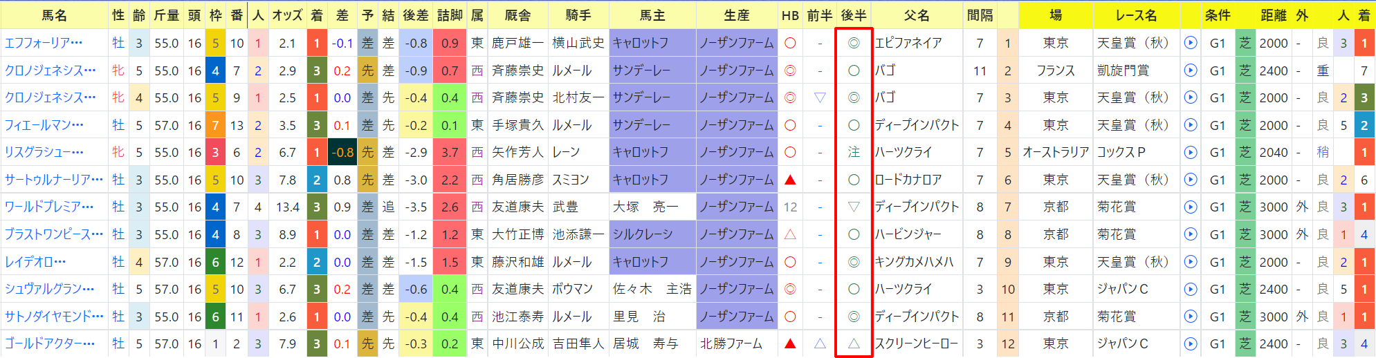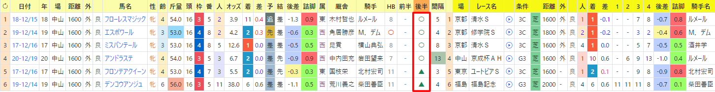 過去の1~3着馬で後半印入りの馬達はこんな。