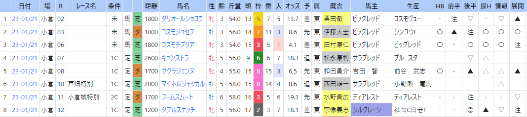 小倉8Rは…時間切れですね。明日また時間があれば。