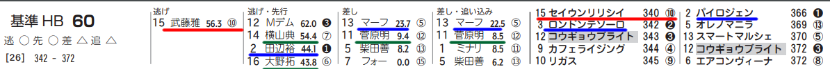最終的な印や推定前半3ハロンデータはこうなりました。