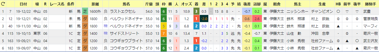 明日の中山、HB印入り(1~6位)までの一覧だとこんなです。