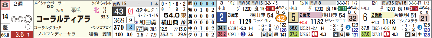 リストの1番左、HB印◎は14・コーラルティアラ。