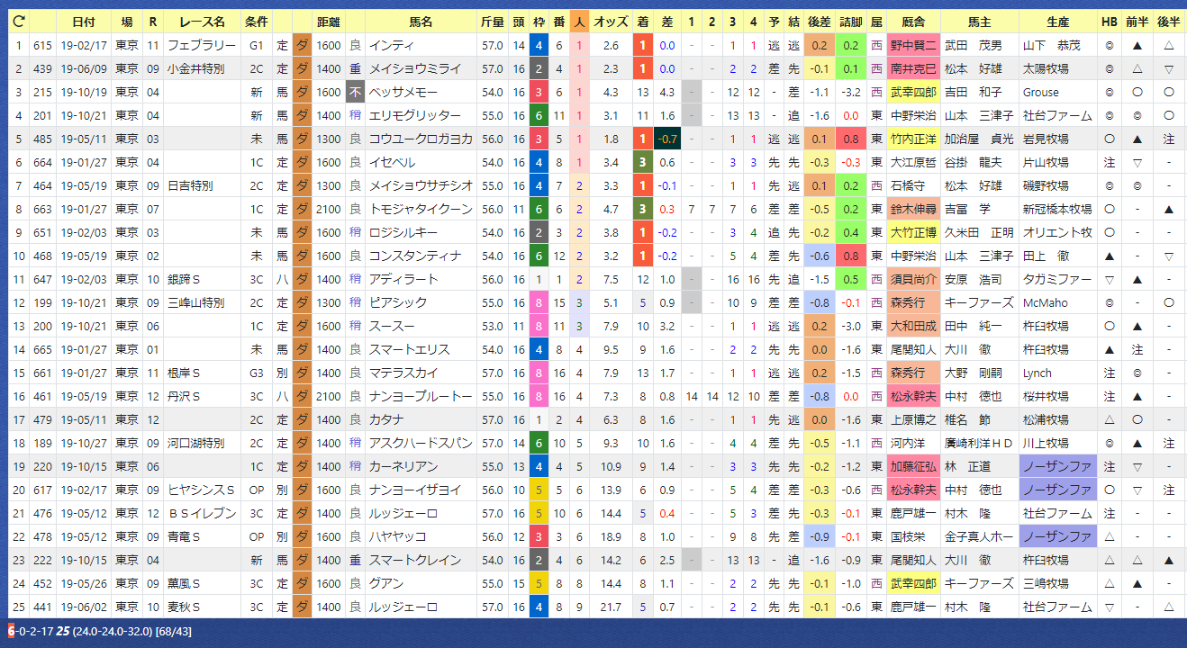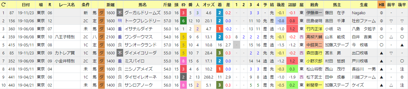 東京と言えば差し・追い込み、ではありますがHB印◎と、能力がある馬ならばしっかり前で競馬をする馬の方が優秀です。