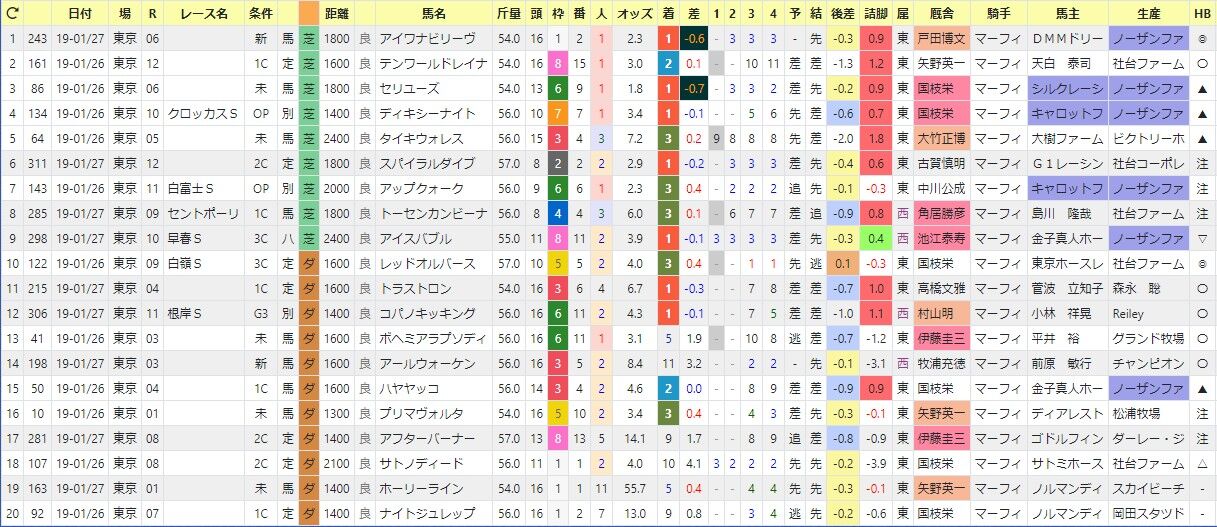 昨年の1月の東京開催の「推定後半3ハロン」の成績📝
