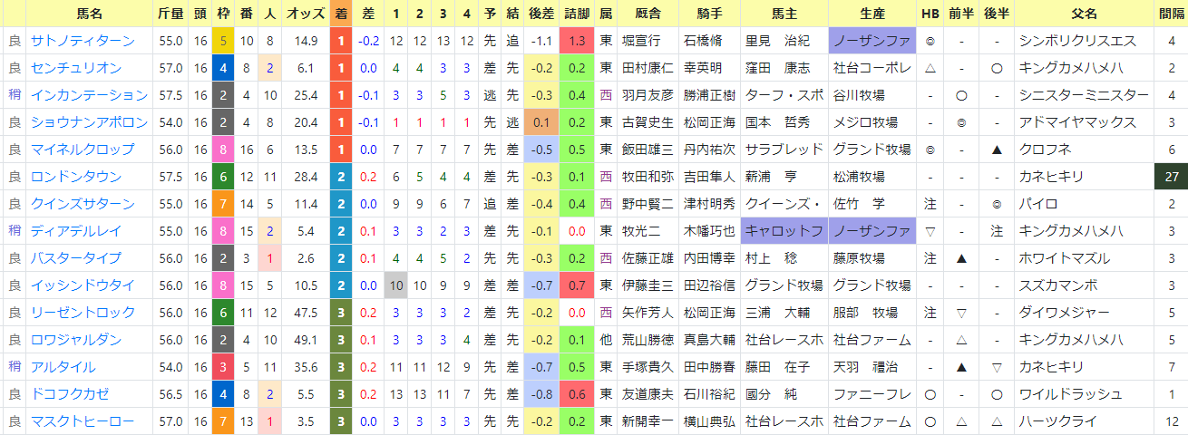 一応、前日時点では3勝クラス→OPの壁を1発クリアした12・ワイルドカード、「前半」1位の14・メイショウワザシを考えてはいたのだけれども。