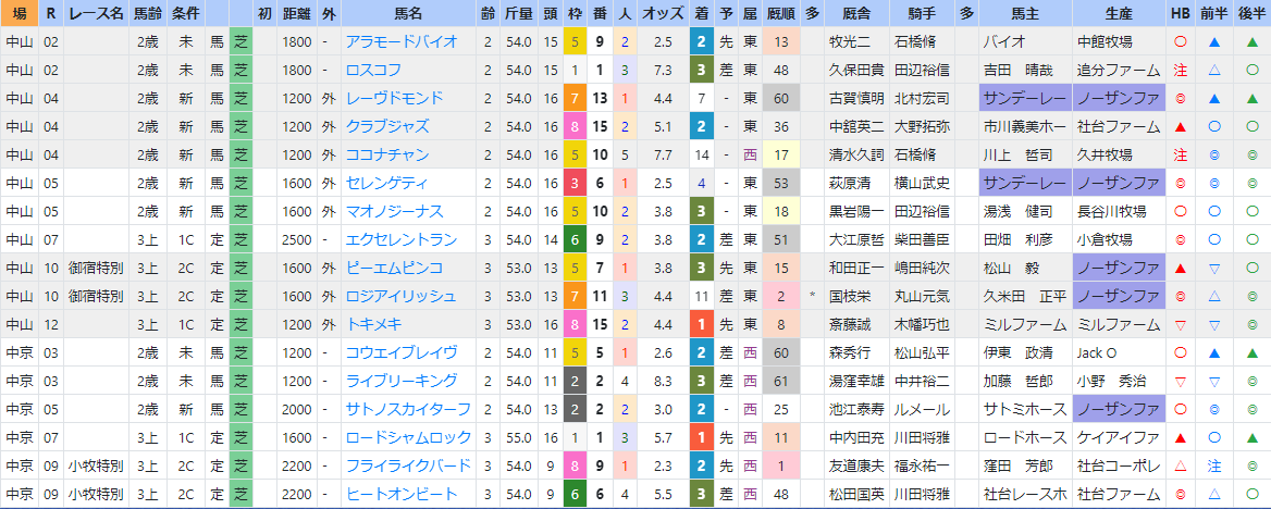 中山の芝で配当が欲しければ、前で競馬する馬に限ります。