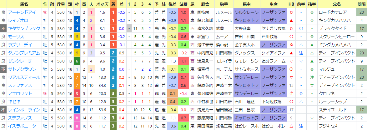 2+0.59ダノンプレミアム牡458.0kgディープインパクト