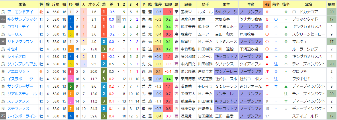 上段が1~3着馬、下段が1~3番人気馬。