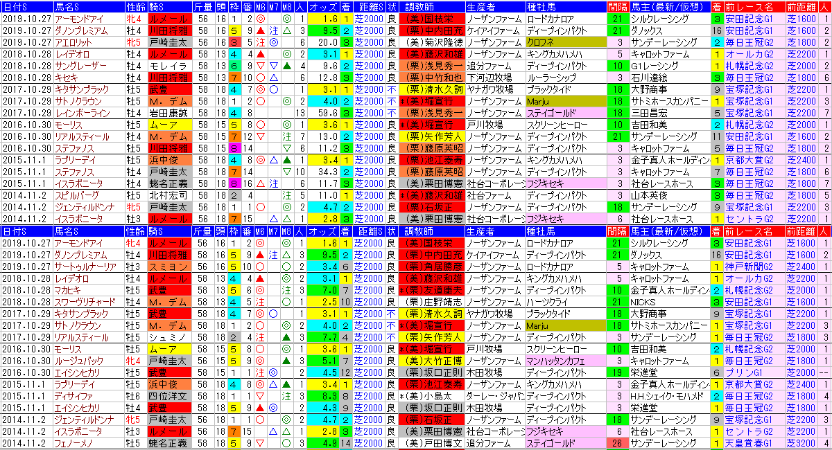3+0.215-10/11毎日王冠G2東京芝1800蛯名正義7人気9.2倍