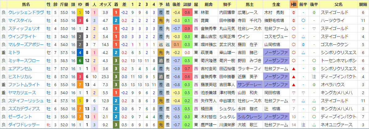 前3F:344後3F:3661000m通過:576前後差:-2.2
