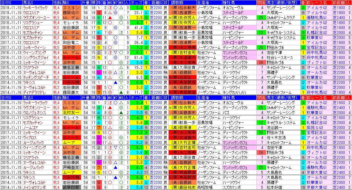 6+0.315-10/18秋華賞G1京都芝2000ルメール2人気3.8倍