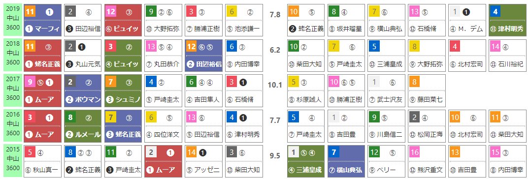 上段が1~3着馬、下段が1~3番人気馬。