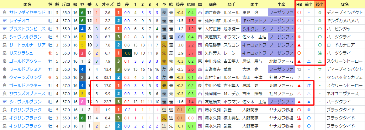 HB:724455Time:2:23.8後差:-0.4詰脚:+0.2後3F:32.8❸