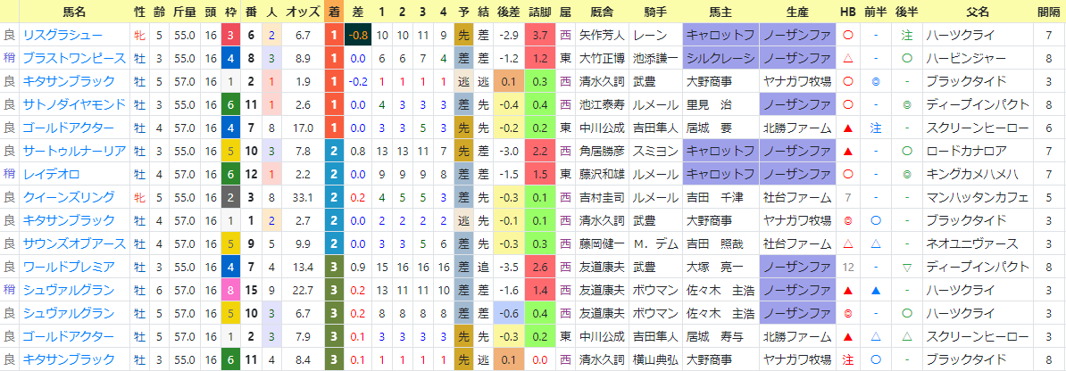 1-0.86リスグラシュー牝555.0kgハーツクライ