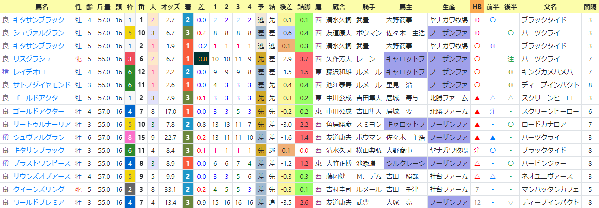 3+0.111キタサンブラック牡355.0kgブラックタイド