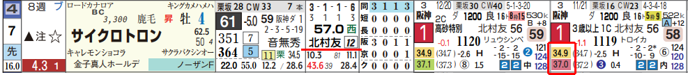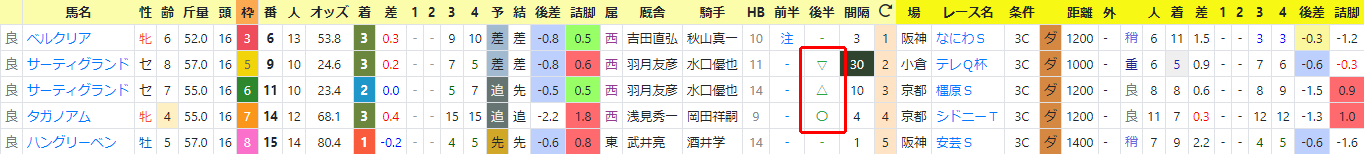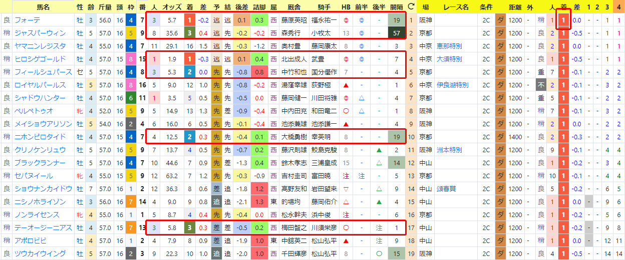 前走1着時の「詰脚」のパターンも「黄色・赤」と優秀です。