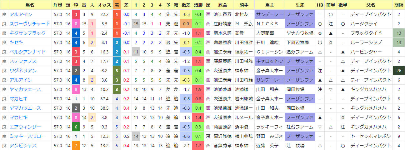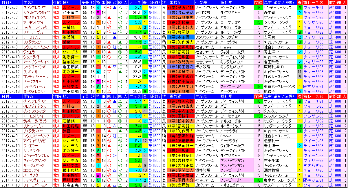 ・アーリントンカップ 過去成績・想定版をみると