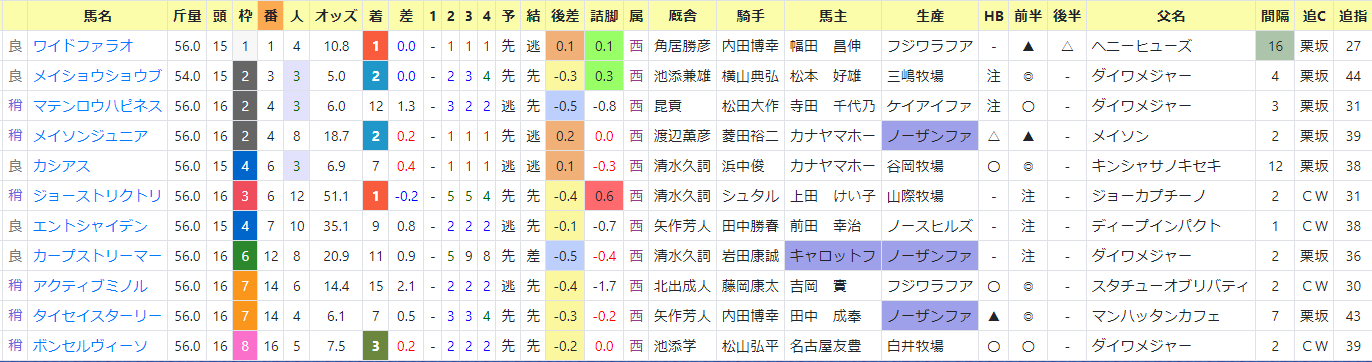 同レースの「以降成績」を見ると。