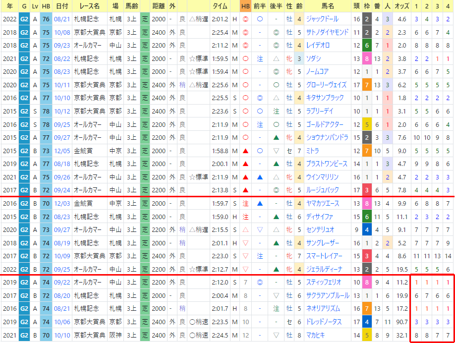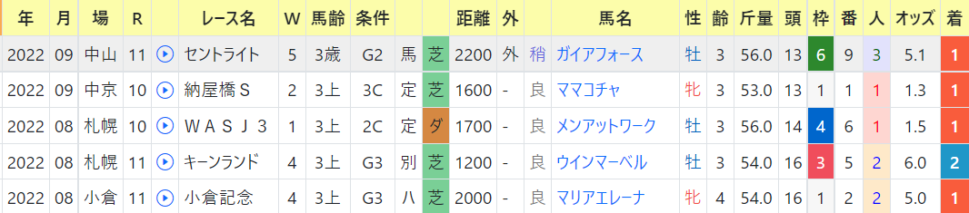 ・スワンステークス 過去成績G1にはちょっと足り無い、がずらっと揃いました。